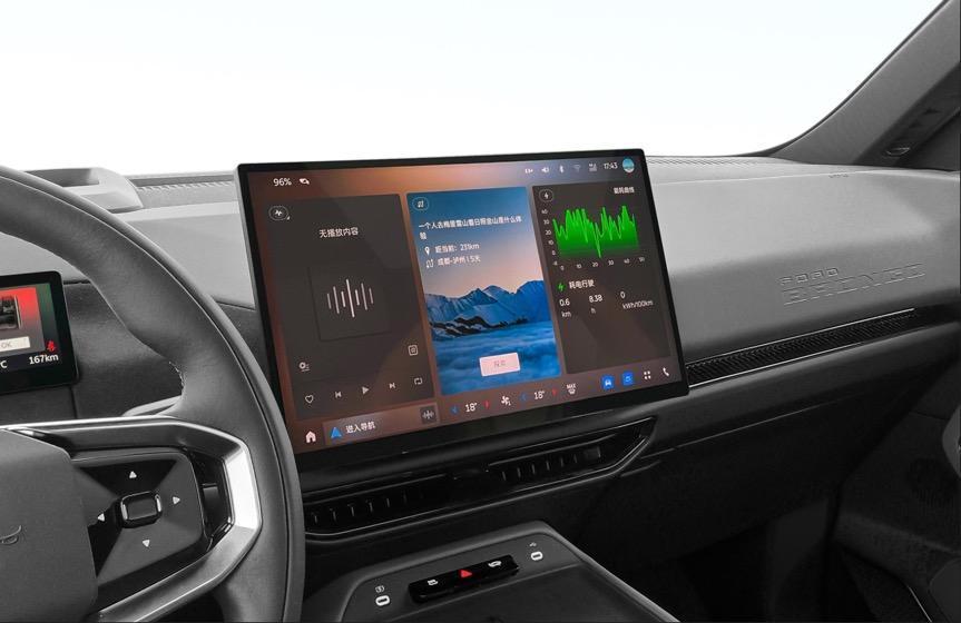 拥有100000:1超高对比度,明暗分明,画面生动。这意味着什么?当你在烈日下开车时,这块屏可做到按需要发光,该亮的地方足够亮且完全不会反光,即使夜晚行车屏幕也会自动规避无效能耗,让该暗的地方能彻底暗下去。对于野外探险的用户来说,这种全天候的优质显示体验显得尤为可贵。尤其是当你在野外使用【全景越野透视功能】时,将路况看得更清晰,相应的操控也会越精准,越安全。