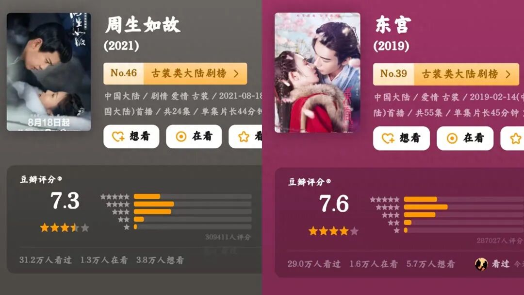 爱看古装剧的朋友应该都知道《东宫》、《周生如故》这两匹古装剧黑马吧?