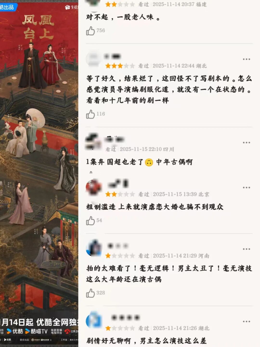 这些问题组合在一起,《凤凰台上》很难火起来啊,不知道后面剧情会如何发展,能否挽回口碑呢?